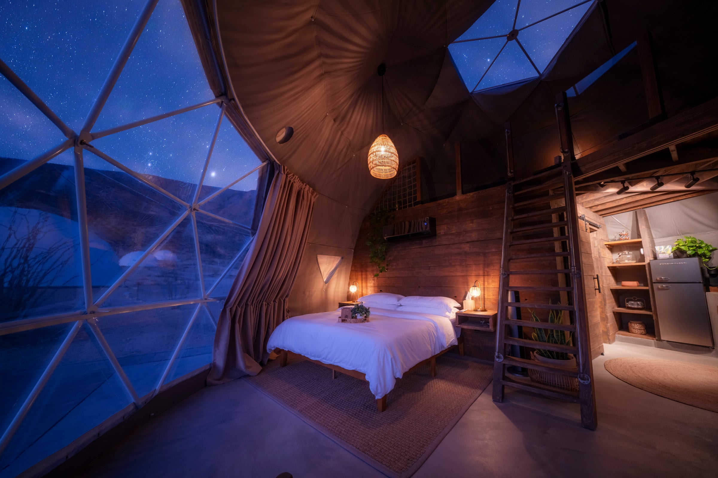 Our most spacious and luxurious domes. These suites are twice the size of our Super Stargazing Domes, featuring a private ensuite bathroom, upstairs loft and much more.
